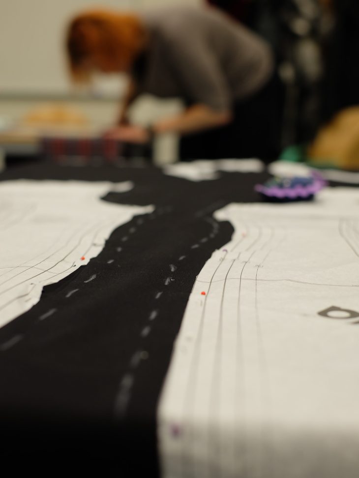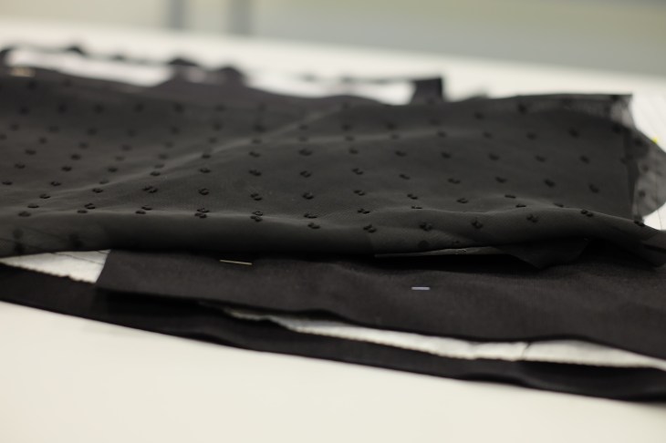 Ich mochte das Klima in unserer Gruppe. Genäht wurden schicke Jeanstäschchen in allen Größen und Varianten mit bunten Inhaltsstoffen, eine Patchwork-Decke, ein Woll-Poncho als Überwurf für ein schickes Kilt-Trachten-Outfit, eine Kochschürze mit süßen rosa Rüschen an der Seite, ein Pinkes Umstandskleid, eine Jeans-Umhängetasche und ein schwarzes, figurbetontes 50’s Kleid (Bleistiftrock mit Tüll-Pünktchen-Einsätzen an den Ärmeln). Rate mal, welches mein Werkstück war. Natürlich Letzteres. Nicht nur der 50’s Style, which I’m very dedicated to, deutet darauf hin, sondern auch der Schwierigkeitsgrad. Ich hätte auch einfach mal anfangen können zwei Quadrate aneinander zu nähen. Ich weise an dieser Stelle nochmal auf die vier eckigen Klötze meines Kugelautos hin, die die klare Minderbegabung unterstreichen. Nein, LCC musste gleich die Königsliga angehen: Ein Figur betontes Kleid mit ultra heiklem, sensiblen Stoff als Einsatz. Jetzt ist klar, warum ich bei Punkt 12 lachen musste, oder? Soviel zum Thema Starte mit einem einfachen Nähprojekt. 🙂 Bitte nimm wenigstens du diesen Ratschlag ernst!